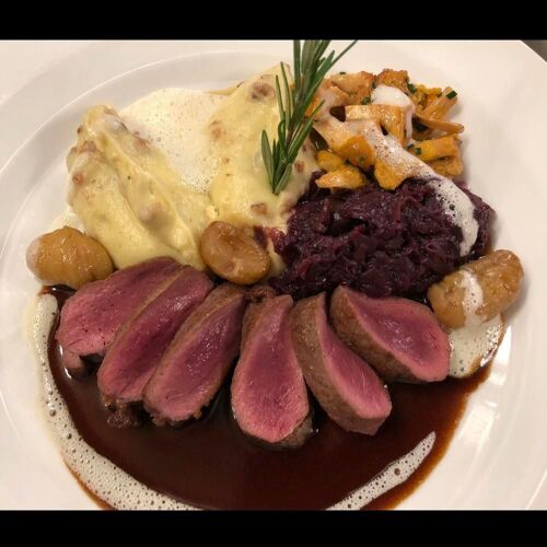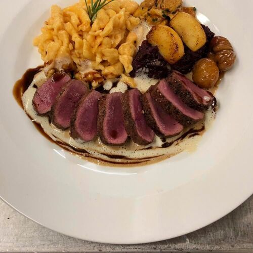 In this cosy little restaurant in the vaulted cellar, you can look forward to the "Gourmet Menu", which is served at lunch and dinner, with the option of up to seven courses. At lunchtime, Beiz serves a set menu, as well as a choice of à la carte dishes. There is also a decent wine selection, and the front-of-house team is friendly and competent.