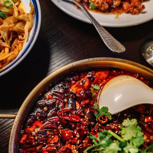 This Chinese restaurant has taken the city by storm—and rightly so. Alongside a number of offshoots around town, the original location opened in 2023 in an unsuspecting Cordova strip center. For those who love heat and savor spice, this is ground zero for fiery, tongue-numbing, chili-laden Sichuan cuisine. Focus on classics like the umami-packed mapo tofu, stir-fried cumin lamb, crispy chicken tossed in a mound of dried chilis, and properly charred green beans. Portions are generous so bring friends and order with abandon.