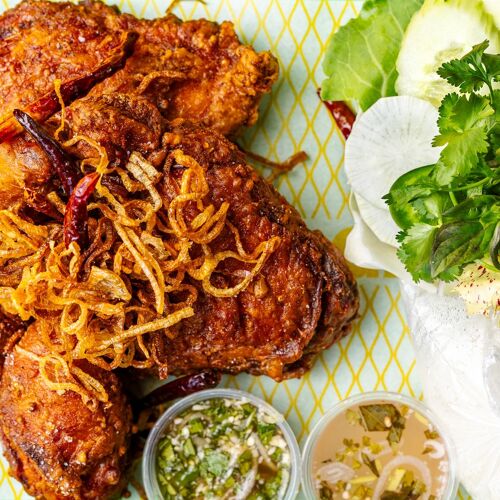 Fried chicken in Nashville is far from a stretch, but SS Gai deals in Thai street-style fried chicken for an unexpected twist. Located in a refurbished car wash with vendors in the former bays, this spot has a one-track mind. It's all about Thai-style chicken, and while fried is the signature, it also comes grilled. Order at the window and select two or four pieces of gai tod that's impossibly crispy and bursting with flavor. It all comes with sticky rice and tamarind chili fish sauce for a hearty meal that shows off quality ingredients and hits all the right notes. From there, you can add in one of their pounded salads like the charred eggplant, but the mango crispy sticky rice slathered in a mango sauce with lime zest for dessert is essential.