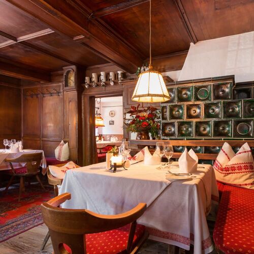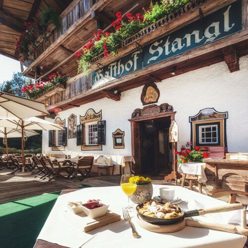 Dating back over 400 years, this traditional inn now operates as a combination of organic farm and luxury spa hotel. The regional menu takes its cue from the seasons and also includes classics such as roast chicken and Tyrolean goulash. With 65ha of grassland and 52ha of Alpine pasture, they can produce milk, quark, butter, yoghurt, cheese and bread on site. Food is served in the cosy rustic-style interior – one area has a view of the cowshed – and on a lovely terrace overlooking the garden.