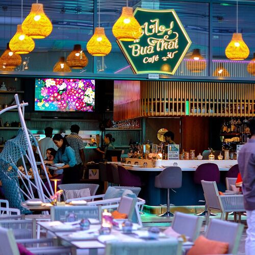 Hidden in a massive retail complex in the heart of Yas Island sits this cosy and colourful Thai café. Expect simple Thai lunches and an authentic menu adorned with the likes of steamed hagao, vibrant chicken green curry and, of course, the ever-so-loved mango sticky rice dessert. Take a seat on the terrace during cooler months, but be sure to book ahead, especially at  weekends.