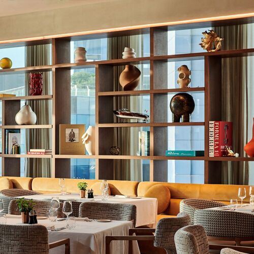 This Abu Dhabi outpost of the global franchise is housed in The Galleria Mall on Al Maryah Island. The spacious interior with smartly laid tables has a large open kitchen with a counter – decorated with seasonal ingredients – wrapped around it. Mediterranean cuisine shines, with some highlights being the freshly made daily pasta, fish, chilled gazpacho and berry tart.  Their lunch menu is great value and the a la carte offers something for everyone. The experience is completed with a lovely pianist belting out tunes all day.