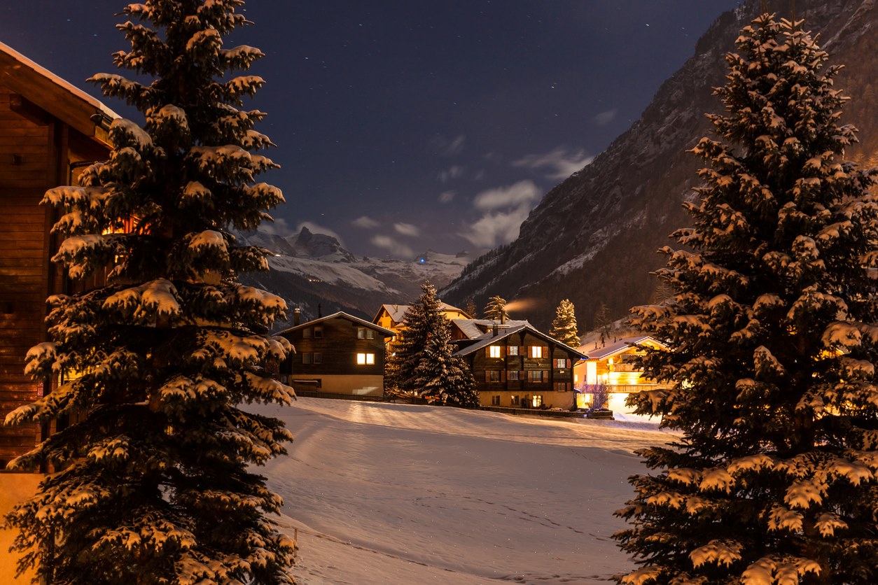 The twinkly lights and ski slopes of Zermatt in the Alps at Christmas. © VogelSP/iStock