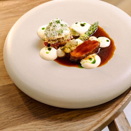 Built in 1625, the national monument Huize Lindenoord has kept its historical character intact. Inside, the gorgeous ornate ceilings adorned with chandeliers and graceful curves harmonise beautifully with the modern upscale decor of this restaurant. The surrounding parkland and garden lend this sumptuous setting an added air of distinction. Jan Smink, a proud farmer's son and true Frisian at heart, proves himself to be a charismatic chef who dares to push boundaries. His culinary style is thoughtful, bold and exciting. Backed by great technical prowess, he artfully dances with textures, temperatures and flavours. Think velvety potato mousseline with chives, topped with a few earthy sautéed morels. This is accompanied by mushrooms in a vibrant marinade and al dente white asparagus crowned with melted pancetta and briny caviar. A beurre blanc enriched with pancetta oil melds all these exuberant nuances into a dish that is full of depth. This is Jan Smink through and through: creative and unconventional, but never complicated for the sake of it. He infuses every dish with personality and consistently captivates with his surprise menu.