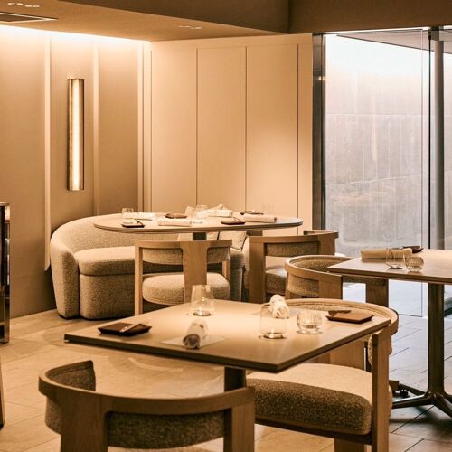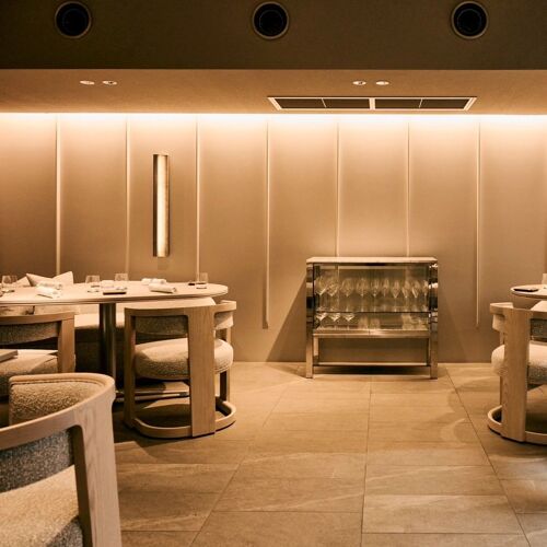 The chef prizes ‘combinations of flavours and aromas’. His mentor in Paris, Christian Le Squer, taught him to seek out new flavours by developing the sensibility of a perfumer. Experience and ideas come together in the ‘Warm Salad’. Vegetables picked in the Takagamine district of Kyoto’s Kita Ward are cooked in a variety of ways, drawing the flavour of each to the fore. Interplay of aromas between char-grilled meat dishes and their sauces express this fare’s unique character.