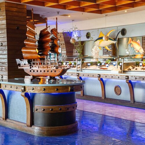 The name says it all – take your pick of an array of fish and shellfish, locally sourced from the nearby Red Sea, all displayed on ice. While your fish is being prepared – fried or grilled as you like – start with a refreshing salad from the colourful salad bar or have the creamy fish soup. Finish off with a cracking crème brûlée while enjoying the views of the Jeddah Corniche and the magnificent King Fahd’s Fountain.