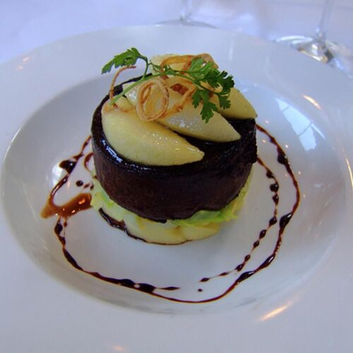 Choose whether to enjoy your meal in the cosy dining room with its open fireplace, in the airy conservatory or on the lovely terrace shaded by trees… This restaurant is a charming location in which to sample good regional food: the menu includes dishes such as Glückstädter Matjes (PDO preserved herring) or fillet of wild boar, cooked rare in a juniper berry jus. Tip: The lunch set menu is an excellent deal. Should you wish to stay overnight, the pretty guestrooms are very inviting and all individually decorated.