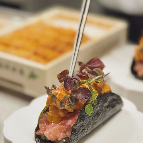 More elegant than cozy, this omakase-only spot from Chef Paul Ko offers a contemporary blend of kaiseki and sushi in a stylishly modern setting. The spacious room features an assortment of tables, but seats at the cypress wood counter are preferred for the optimal experience. The meal begins with composed bites featuring international flavors, like a crisp phyllo pastry of duck confit, maple and pistachio, or a kombu-cured sea bass crudo paired with tarragon, yuzu kosho and apple. The assortment of nigiri is largely distinguished by subtlety, as in kanpachi topped with a shiso relish, or tender anago dusted with sansho pepper.