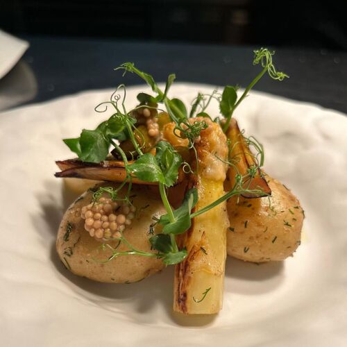 First things first: you should make a reservation, because the Bouvier family's small restaurant only has four tables (which explains the name ‘BOU4’). Junior manager Julian Bouvier attentively looks after a maximum of 14 guests. Head chef Christoph Gschwendtner is also part of the team – he proudly presents his creations personally at the table. His cuisine is classically French, with Asian or Oriental accents providing variety. The cooking is elaborate and technically demanding, with a clear focus on flavour. Passion and skill are evident even in the snacks served beforehand, such as the beautifully crafted, juicy and golden-brown baked veal head praline with fleur de sel and sauce gribiche. You can choose between a four or six-course menu, which changes weekly. All guests start at 6 p.m. A special detail of the straightforward, modern interior are the curved black wooden tables. The restaurant is located in the Hotel Jägerhof.
