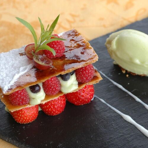 Local ingredients (Puy green lentils, Grazac snails, free - range guinea fowl etc) are transformed into appetising meals by the chef. The food is good and hearty, as well as carefully prepared. The cheese trolley, which includes lots of cheeses from Auvergne, is an added bonus. It is all very appealing, not least the very well - appointed rooms.