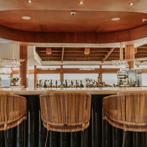 This hotel dining room has an enviable location facing the ocean. The room is intimate in scale and boasts a wall of windows offering a gorgeous view. Time it right and you can watch the sun set while enjoying dinner.