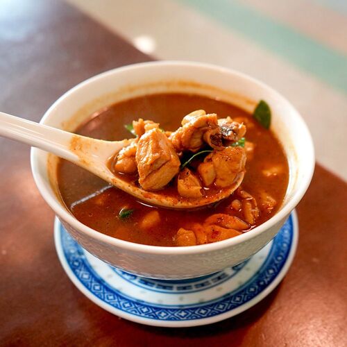 When Ruenros opened 40+ years ago, its owner came from a medical background, hence the focus on herbal and medicinal braised dishes. The 3rd generation heir now runs it and he chooses all the market fresh ingredients himself every day. Specialties include spring rolls using a family recipe, stir-fried goat with celery, fried rice with salted fish and slow-cooked soup, which is packed with flavour. For dessert, try the taro purée with sticky rice.