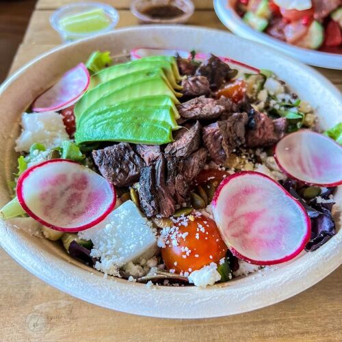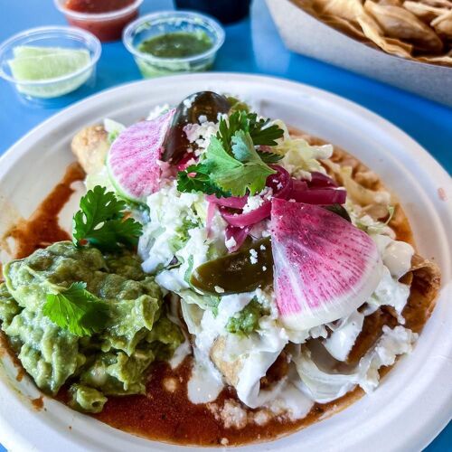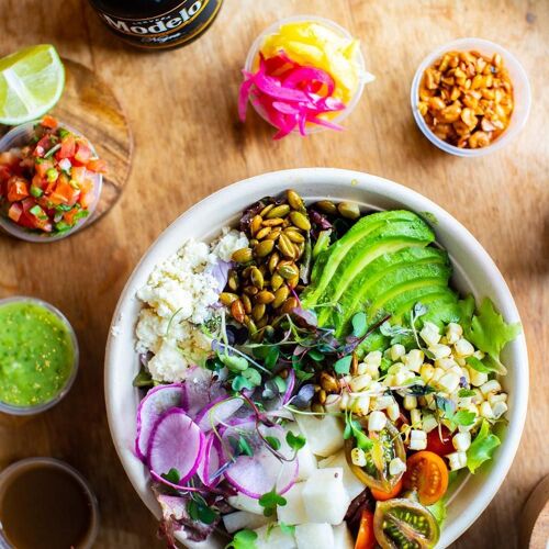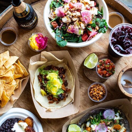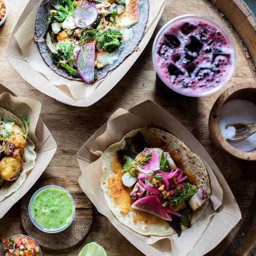Standouts include a cheesy, griddled taco piled with grilled octopus, white shrimp and avocado, as well as a veggie-packed Oaxaca cheese quesadilla bursting at the seams with confit tomatoes, broccolini, and radishes. Definitely say yes to all three of the different salsas handed out with your order.