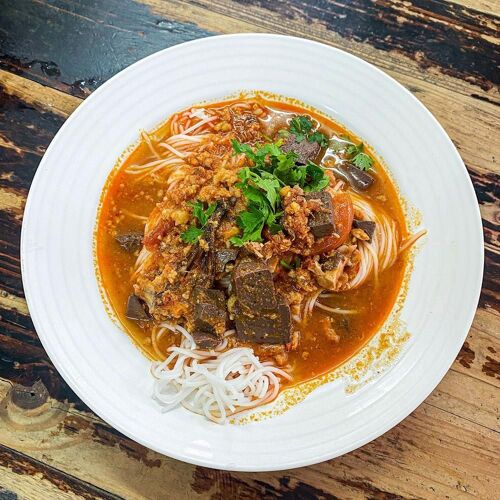 The décor is simple, with a display of photos and messages on post-it notes from customers gone by. Aunt Aoy spent much of her career cooking in hotel kitchens. Her expertise is realised in the fluffy yet crispy Chef Omelette with stir-fried minced pork, salted egg and pork crackling.