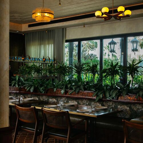 Part of an ever-growing group, this Persian restaurant is located on the popular Al Maha Island with great views of the city – a seat on the terrace is always a top choice when weather permits. The food is pure Persian; all the favourites are here such as wonderful breads, tasty black chickpea hummus and kebabs cooked over coals. Don’t miss out on other dishes too – some to share – like the Ghormeh Sabzi, a deliciously flavoured stew, and save room for their saffron-flavoured crème caramel. Pro tip: tea reigns over coffee here.