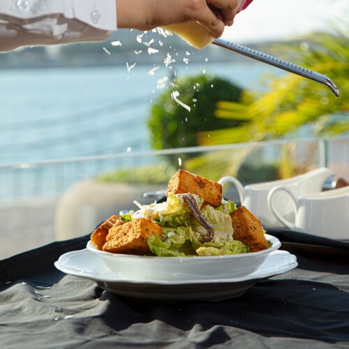 This branch of New York’s famed Italian American restaurant is found on the edge of Al Maha Island. A fun spot, it has all the iconic dishes from the original, including their signature spicy rigatoni, which is certainly worth coming for. Other must-haves include steaks, lamb chops and the desserts presented on a trolley; the cheery and attentive team are also all ready to recommend their own favourites. It’s a brasserie-style interior with a stage set up for a crooner to sing classic songs if you’re lucky; we suggest taking a seat on the terrace for fantastic views of the city.