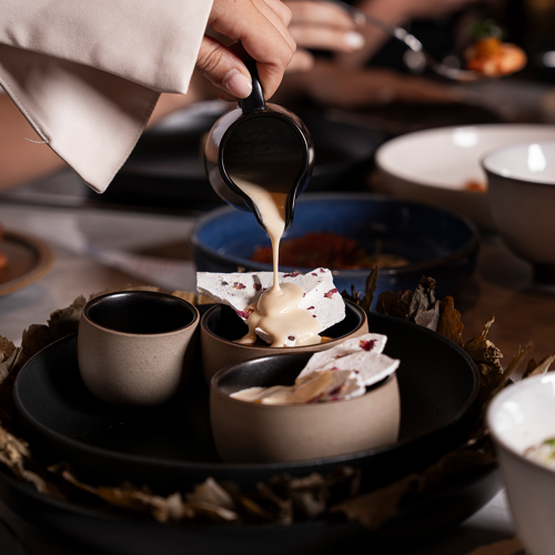 As the name suggests, the owners hail from South Africa as does the cuisine of their restaurant located in the Andaz Doha hotel. The space has shelves stacked with salt from around the world, as it’s used for curing and pickling, which is how they used to preserve food back in the day. The menu has a variety of sharing options – the 5 cured brisket is delicious as are the Josper roasted mushrooms – but the steaks are particularly notable here. If you’re unsure what to order, the well-informed team’s advice is a good guide. Try some of their South African wines, offered by the glass or bottle.