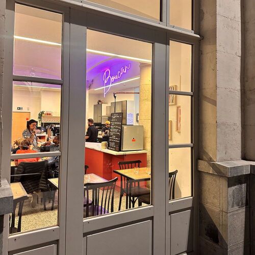 Chef Kevin Barata and Lucile Prévost (partners in business and in life), already owners of Au Koning Van Peene, are now also at the helm of the restaurant of La Barcarolle theatre. Neon lights and zesty colours make for a delightfully pop decor. The cuisine is straightforward and generous (especially the sauces!) and draws on emblematic produce from this northernmost part of France.