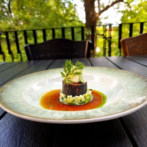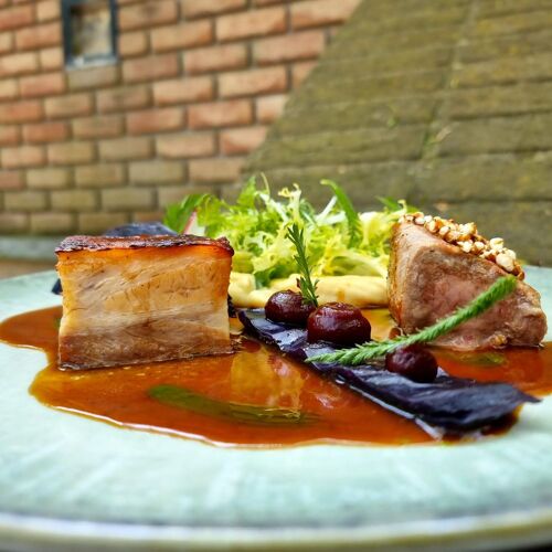 This attractive and immaculately kept restaurant is accessed via an inner courtyard. The bright winter garden is a particularly pleasant spot, and has a fireplace for cooler days. In spring and summer, the terrace on the balcony – with a view of the city park and spa gardens – is the place to be. The menu features seasonal and traditional dishes with contemporary, snazzy and on-point presentations. The experienced and friendly service is the icing on the cake.
