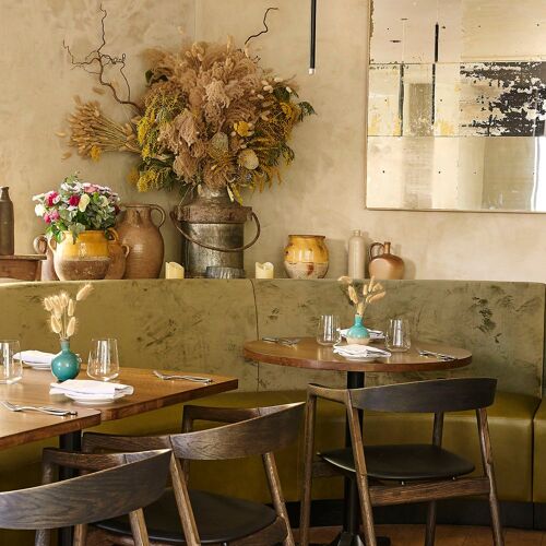 In this bistro, named after a coastal dune plant, chef Julien Dumas (Bellefeuille, Lucas Carton) works hand in hand with his talented associate Lucas Boisseau to cook up tempting bistronomy cuisine. The focus is on the essentials, with a few creative flourishes: fillet of pollack, grilled wild asparagus with a little bite, cockles and onions served in their jus; to finish, a fresh and vibrant fennel and grapefruit dessert rife with contrasting flavours. The concise menu is always evolving, with a good-value set menu at lunchtime and tasting menus in the evening. The sleek and elegant interior features a large mottled mirror, suspended lighting, faux concrete walls, hardwood floors, a glass-fronted wine cellar and eclectic decorative touches.