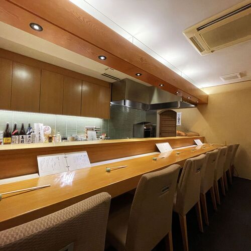 Names of dishes cram the menu. The menu is replete with fish dishes, so you can enjoy the ‘fruits of the sea’ to the full. Fish from Wakasa Bay, in the chef’s native Fukui Prefecture, is a point of pride. Whether served as sashimi, grilled with salt or boiled in soy sauce, their inherent flavours shine through. ‘Heshiko’, fish pickled in rice-bran paste, is a Fukui hometown favourite. Fukui sakes are ordered in, spreading the appeal of the Echizen and Wakasa regions. Standards such as potato salad and deep-fried horse mackerel are perennial hits as well.
