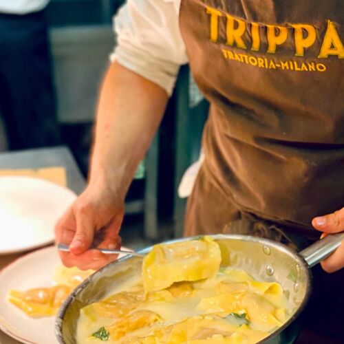 Simple, informal and with a slightly retro feel, this restaurant serves a range of dishes from all over Italy, including the tripe which gives the restaurant its name. Unfussy and uncomplicated, the cuisine prepared by the skilful young chef using top-quality ingredients makes this one of the best trattorias in Italy. House specialities include Milanese risotto with grilled marrow, vitello tonnato and, of course, the ever-present tripe!