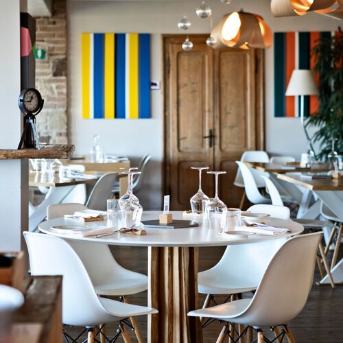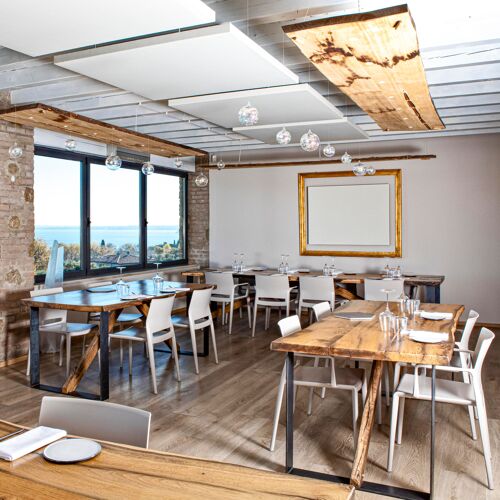 This bright, minimalist - style restaurant is situated on the road but its dining room faces the lake. It serves imaginative and personalised cuisine with both fish and meat dishes on the menu.