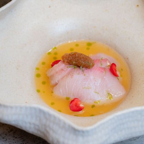 Tucked away on the ground floor of the Pacific Star Building, Aurora delivers Asian cuisine with a focus on slow, deliberate cooking. The chef honours and tributes to the owner's mother, heartfelt food that is grounded in the classics. Dishes such as crisp betel leaf cups or the standout hamachi collar – yellowtail fish, its skin grilled to a smoky finish, paired with lime and peanut sauce – showcase depth and finesse.