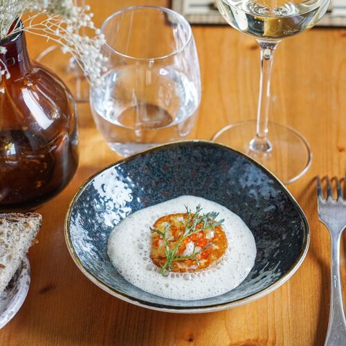 Whether beneath the lime trees (ezkia in Basque) on the terrace, or inside the small, inviting and intimate restaurant room with exposed stonework, floorboards, saffron-coloured velvet seats and banquettes, it is the same traditional Basque house. Standing in the heart of the delightful village of Bidart, it exudes a quiet, refined atmosphere. The couple who run the place, defectors from Michel Guérard's restaurant, serve nice seasonal precisely cooked dishes, full of good local Basque produce e.g. farm-reared pig, line-caught tuna, black cherry, mature farm cheeses.
