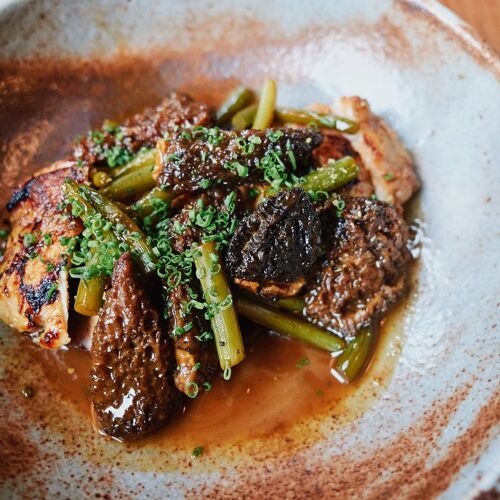 Partners in both life and business, Young Hoon Ji and Seung-Min Yi are the brains behind Mhel, where a daily changing menu features around a dozen dishes blending Korean and Japanese influences. It's the kind of place that's just right for a midweek meal, either catching up with friends at a table or dining solo at the counter, and while the space is simple, it's cozy. While the dishes shift, the attention to detail never sways, as in a dish of cucumbers pickled in a mix of dashi, yuzu and sudachi for a savory-sweet mix or a plate of charcoal-grilled chicken with morels in a rich sauce. A nice selection of sake rounds out the offerings.