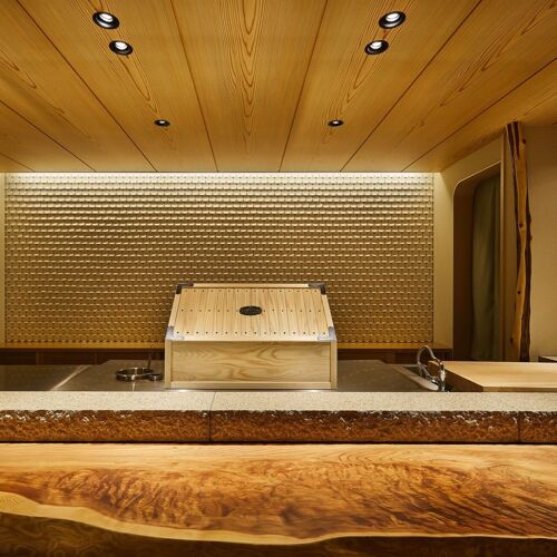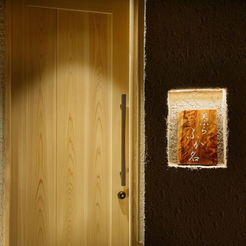 Helping his mother with the cooking as a little boy was the chef’s gateway into the world of Japanese cuisine. He learned the craft at a hotel, where he was entrusted with tempura; later he went independent, fulfilling his dream. The sign was written by his mother, a calligraphy instructor. The chef’s aim is to serve tempura so light, you wouldn’t know it’s deep-fried. Pieces are lightly coated and aromatic when fried. Points of pride include tempura using sea urchin and nori, as well as wagyu beef fillet wrapped in perilla leaf.