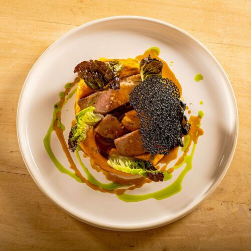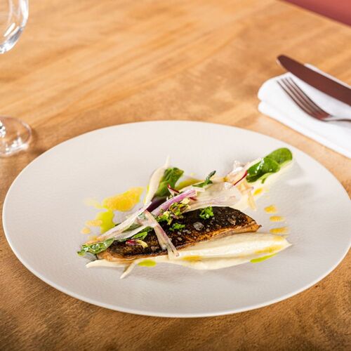Set in a village that boasts several hundreds of cellars hewn out of the tufa rock, this restaurant housed in a handsome Classical mansion pays tribute to the terroir of Jasnières and Coteaux-du-Loir AOC wines. Beneath the exposed beams, the rather modern interior is accentuated by street art displayed on the walls. There's no doubt about it: chefs Maïté Hervé (starters/desserts) and Florent Demas (main courses) know what they're doing when it comes to both the decor and the food. Drawing on the village's larder, they create delicious straightforward dishes – think white asparagus, lardo di Colonnata, lemon sauce; standing rump of veal smoked in hay, pea cream and a shallot crisp. Perfection on a plate! Excellent value for money at lunchtime.