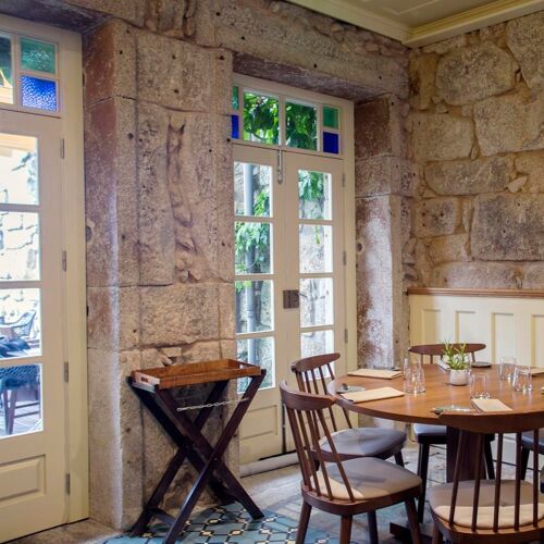 It’s housed in a building that used to be a traditional coffee and tea shop on the outskirts of Bolhão (the place that gives its name to one of its executive menus). Chef João Cura, after gaining experience in prestigious restaurants in Spain, decided to embark on his own project alongside his wife, Sofia Amaral — who runs the dining room. The concept is grounded in seasonal cuisine and, before designing the menu, the freshest products are selected from local producers. Originality and flavour abound in the chef’s signature creations, which can be enjoyed as a 10-course tasting menu, the Bolhão and Trindade menus (available only on weekdays), or à la carte options. Enjoy the experience in the garden — it’s charming!