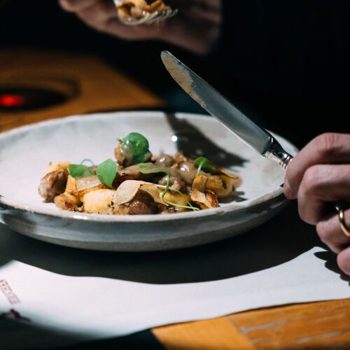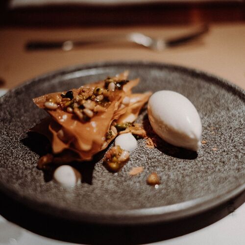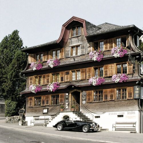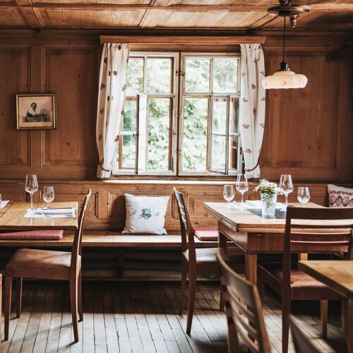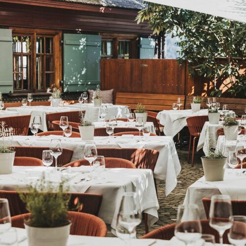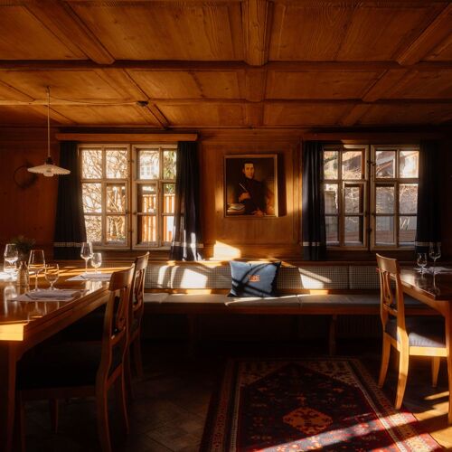 The concept of sustainability shines through in Jonathan Burger's cuisine. Ingredients are sourced in the region, the fruit and vegetables are predominantly organic or grown by neighbouring farmers, and a nose-to-tail approach is applied to all produce. The latter philosophy is evident, for example, in a dish of grilled chicken hearts, pumpkin, Schupfnudeln (finger-shaped potato dumplings). They also conjure up vegetarian fare, especially in winter when in-house fermentation methods play a major role – for example, their Vetterhof radish with gochugaru and miso broth. The setting is also beautiful: Housed in the Hirschen hotel, a hub of art and tradition that dates back to 1755, the restaurant's tastefully decorated dining rooms draw on a sense of history. At lunchtime, only salads, light bites and cakes are served.
