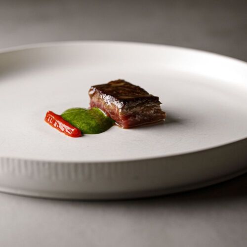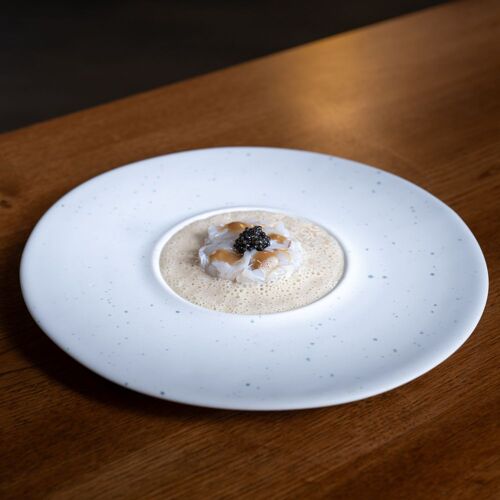 Situated in a secluded residential district that is part of L’Aquila’s historic centre, this intimate restaurant with an elegantly minimalist ambience is home to skilful owner-chef Simone Ciuffetelli. Having gained experience working abroad, Ciuffetelli showcases local ingredients in his creative, contemporary dishes, with the occasional use of fermented products and a frequent focus on just three ingredients. A good example is his dessert featuring cream and crunchy toasted hazelnuts generously coated with a white-chocolate mousse that is “disguised” as an Italian-style meringue thanks to a sprinkling of liquorice powder.