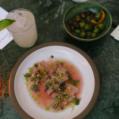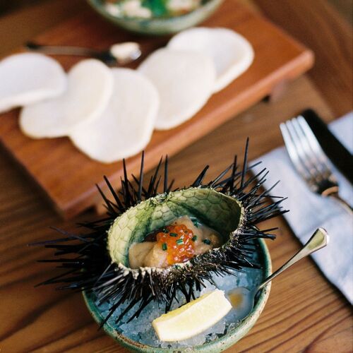 Some dishes seem simple but deliver in spades. A stunning salad of avocado, baby beets and citrus served on a wide, oval plate is a riot of colors. Then, an herb-laced broth bobbing with Aleppo sausage, spring garlic, potatoes and steamed countneck clams offers a refined take on stew. Then, a classic Pavlova is topped with a citrus custard and fresh blood and cara cara oranges, grapefruit and kumquat for a bright finish.