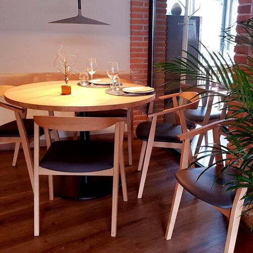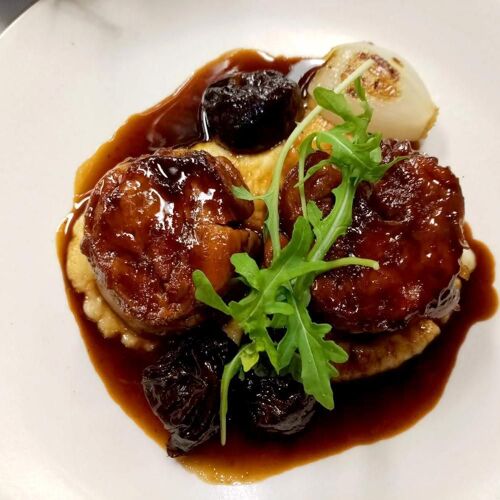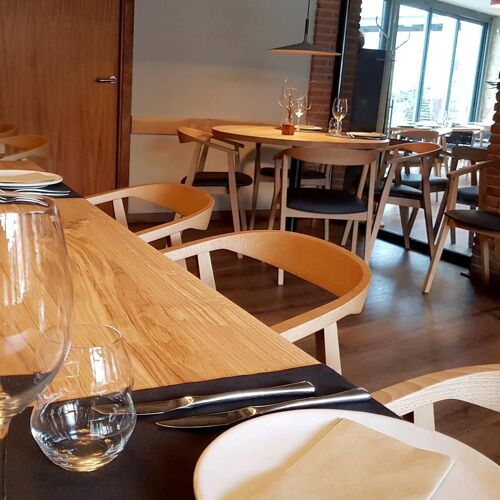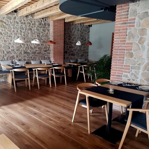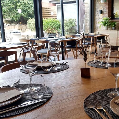 You’ll definitely enjoy this restaurant occupying a family farmhouse, the origins of which date back to the 14C. The welcoming interior, with its semi-open-view kitchen and contemporary-rustic style, provides the backdrop for traditional Catalan cuisine made from seasonal ingredients which is meticulously presented and carefully cooked in order to showcase the flavours of its organic meat to the full. The restaurant offers a good set menu, daily specials, delicious rice options, stews, plus dishes cooked over the Josper grill which have earned it its excellent local reputation. Don’t miss the delicious pigs’ trotters!