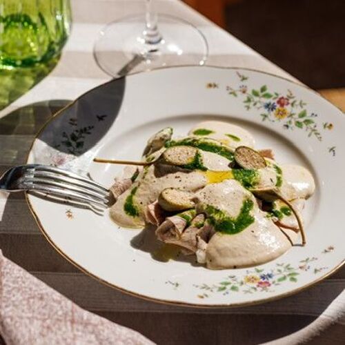 This interior of this trattoria occupying an anonymous rural building at a road junction just outside the village comes as something of a surprise. Inside, the dining room has a warm ambience, with a friendly welcome offered by the female staff. The dishes here are authentic and full of flavour, with a focus on regional Italian traditions and top-quality local ingredients – all the pasta and desserts are homemade. We particularly recommend two of the specialities, namely the “Girella e Cartellata” (made using 36 egg yolks) stuffed with ricotta and goat’s cheese and served with a “ciauscolo” (a type of sausage typical of the Marche and Umbria) ragu and a red wine reduction. A small, simple pergola-shaded outdoor space completes the picture.