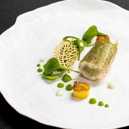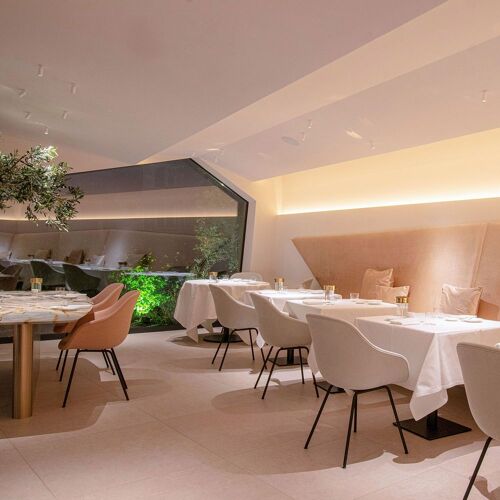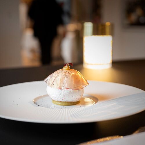 Take a seat, as the restaurant’s name orders, and admire the ornamental tree that jazzes up the elegantly stylish contemporary interior, also home to an authentic cheese cave where all sorts of delicacies ripen slowly. Now let’s add attentive service and tips from the knowledgeable sommelier, who gets a kick out of suggesting unusual wines, and the scene is set. Chef Charles-Edouard Jeandrain mixes playful ideas with timeless classical flavours, conjuring up a fascinating repertory that demonstrates his respect for the ingredient and his quest for varied textures. He may prepare paella-style rice, adding stuffed txistorra squid, whose powerful flavour he offsets by deep-fried mussels and a coulis and purée of smoked paprika. Art-directed, intelligent plating contributes to whetting the appetite of diners and, even better, it is possible to mix and swap dishes from the different set menus. We recommend the Prestige menu, if you feel like splashing out and treating yourself to exceptional produce.