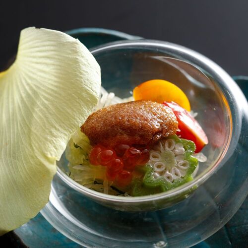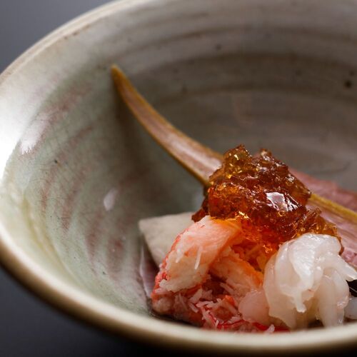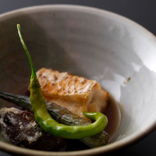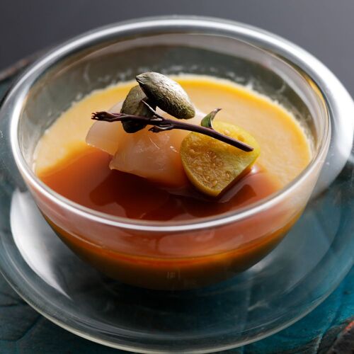 This Japanese restaurant is located in Nara’s oldest soy brewery. The head chef works together with the 18th generation owner and prepares a menu focused on soy sauce and vegetables. Soy sauce is used with everything from the appetisers to the sweets, such as the Miwa somen with soy sauce espuma and takikomi-gohan with unrefined soy powder. The theme is modern Japanese, and some of the dishes draw inspiration from Chinese and French cuisine.