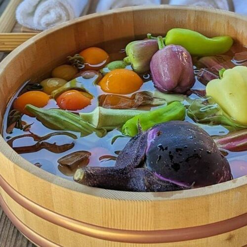 "We grow our vegetables organically in a nearby field, and 90% of the produce we use is home-grown. We keep seeds for continued planting and use vegetable waste to make compost. A local farmer grows soybeans and wheat, which we use to make our soy sauce, in an eco-friendly environment. Normally around 70% of soy lees get thrown out, but we produce zero waste."