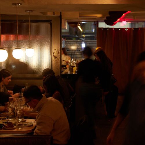 Owned by Chase Sinzer, who pours the wine, and Chef Joshua Pinsky, who mans the stoves, Claud is a sleek and stylish place a few steps below street level. Inside, it's whitewashed brick meets dark charcoal tiled floors complete with snug seating and an open kitchen at the back. A shared plates style informs the menu, and the cooking is ingredient-focused and values substance over style. Begin with the red shrimp, which arrive sizzling with garlic and olive oil. Main dishes, like the pork chop with smoked onion jus and a classic roasted chicken, are hearty and especially satisfying. Complete your meal with a decadent six-layer Devil's food cake that says it's "for two" but we won't blame you if you eat the whole thing yourself.