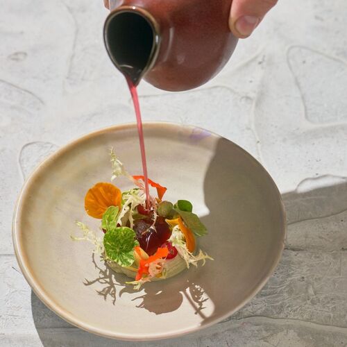 Chef-patrons Sonja Baumann and Erik Scheffler propose ingredient-forward, seasonal cuisine. The majority of the ingredients are sourced from the surrounding area, and some are even foraged by the chefs themselves. The food is predominantly vegan-vegetarian, with pescetarian and "omnivore" options available. In the evening, as Biota, they serve a set menu composed of four, six or eight courses, including dishes such as Eifel salmon trout with pepper and habañero or broad beans with nettles and potatoes. The house classic, "Viking muesli", is often served as an amuse-bouche. The wine list centres on organic, biodynamic and natural wines. The set menu is accompanied by a good selection of wines by the glass or alcohol-free drinks. The appealing space has a clean-lined, modern style; the terrace is also lovely. As Neo, they serve an enjoyable breakfast from 10am to 3pm.