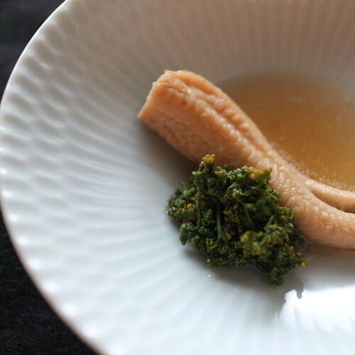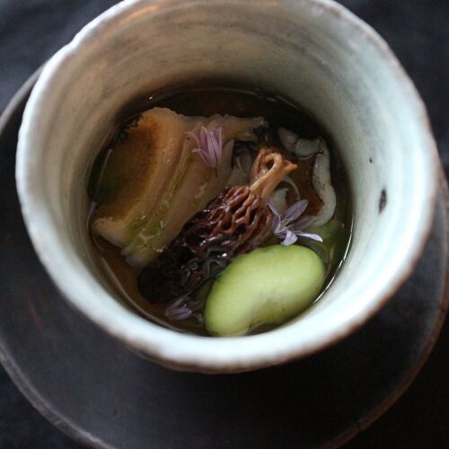 Love of cooking, attentiveness to guests: the spirit of gratitude is etched in the restaurant’s name, which means ‘gathering of the gods’. The chef recreates traditional Japanese dishes and serves them on vessels by modern ceramic artists, expressing the Japan of today. His process for drawing dashi for soup resembles that of a coffee drip; to preserve the natural flavour, the only seasoning is salt. Meticulous food preparation and attentive service say ‘thank you’ better than any words.