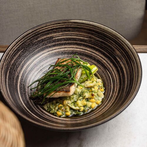 Just down the road from Blenheim Palace, this well-run restaurant is found inside the impressive Feathers Hotel. A gorgeously refurbished property, its elegant style extends to the chic dining room, where the building’s 17th-century features are blended with a light pastel palette. The assured cooking delivers expertly balanced flavours and textures in each enticing dish – just be sure to order a side of the terrific crispy layered potatoes with truffle salt and parmesan. The service team are engaging and attentive yet free of fuss and formality.