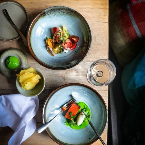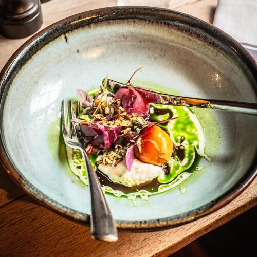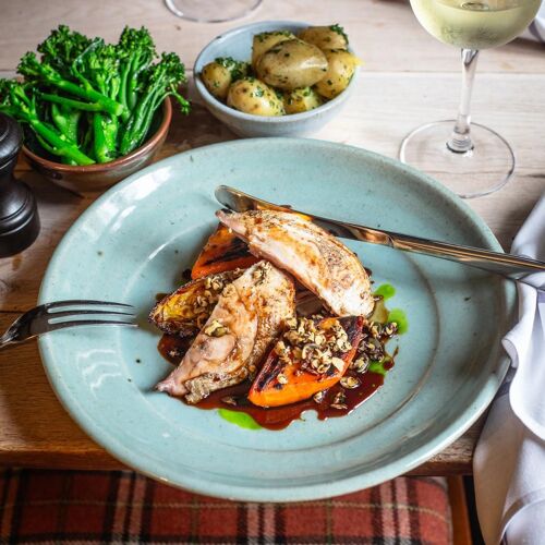 There's a lovely pub ambience at this attractive 16th-century inn; the crackling fire is perfect for winter, while the landscaped garden comes into its own in summer. The chefs bake their own breads, butcher their own meats and champion local and organic produce across an array of menus that let you tailor your visit depending on the mood and occasion: bargain hunters should go for the great value set lunch; steak lovers should come on Wednesdays; and the tasting menu is there for special occasions. Stay overnight in one of the spacious bedrooms.