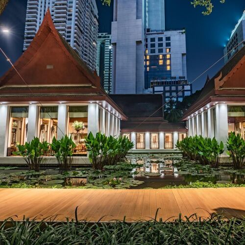 Set in a traditional Thai pavilion within the manicured grounds of the Sukhothai Hotel, this elegant spot blends calm luxury with quiet charm – equally suited to business meals or special occasions. The menu spans refined Thai classics, from rich green chicken curry with crisp, chewy roti to delicately balanced soups and stir-fries. As nightfall descends, graceful Thai dance performances lend a cultural flourish to the polished, romantic surroundings.