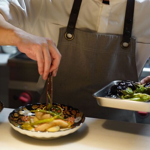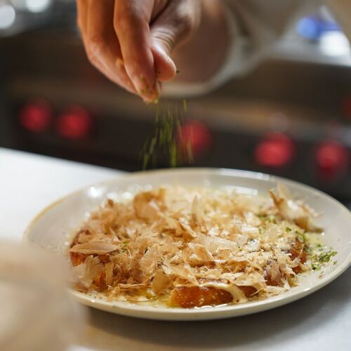 At Soluna, which comes from the Spanish translation of the names of his children, chef Teppei Nii conjures up Japanese-inspired cuisine that strays a little from the norm as a result of its fusion with more Mediterranean-style cooking. At its elongated counter (with seating for six) and its functional tables, choose between menus (Soluna and Festival) that change approximately every two months. One particular dish everyone is talking about and you must try is the famous cod cheek “pizza" (okonomiyaki with cod cheeks pil-pil and tuna katsuobushi).