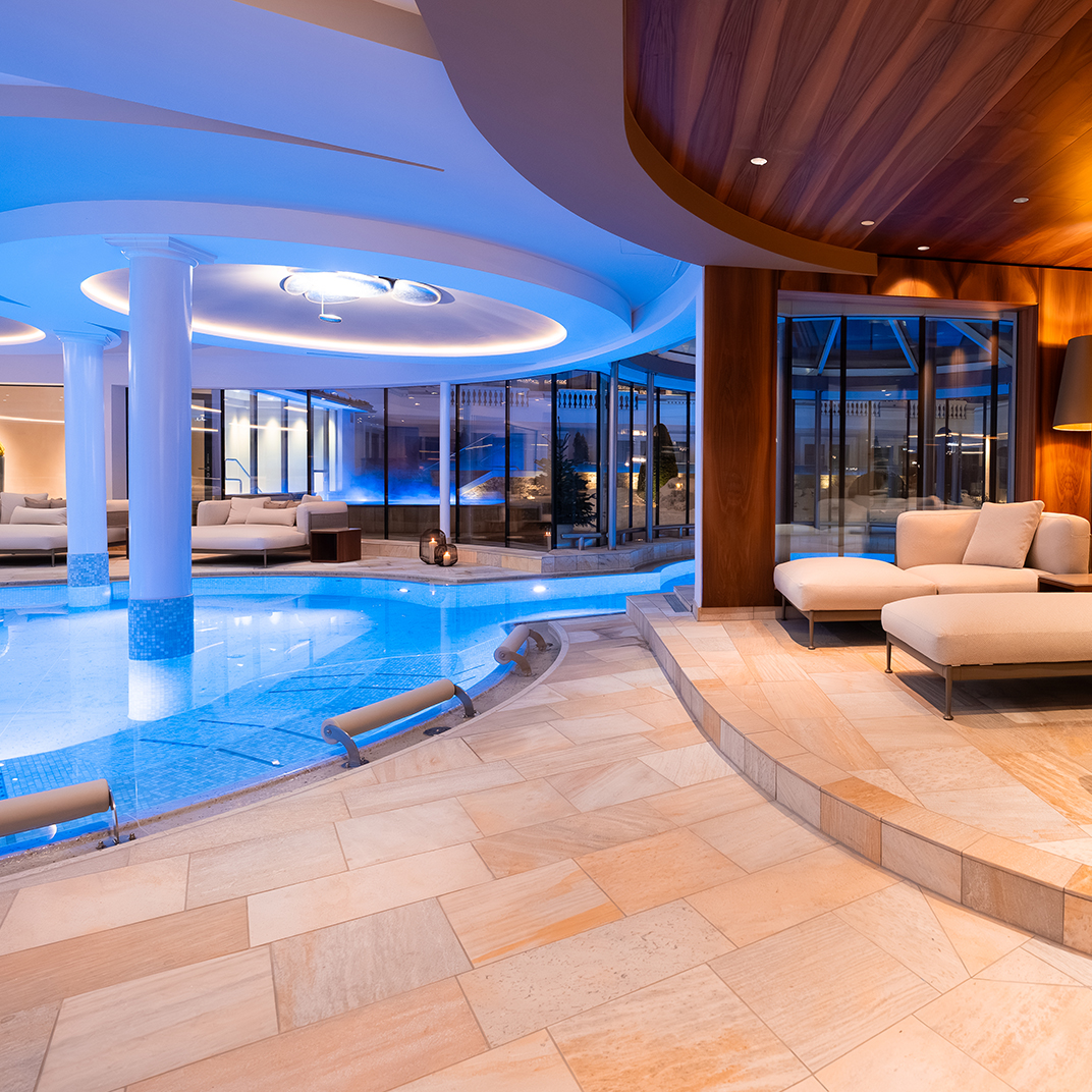 L'hiver venu, la ville d'Ischgl, en Autriche, se transforme en haut lieu du ski alpin par excellence, offrant moults chalets douillets et réjouissances diverses après le ski. L'hôtel Trofana Royal Resort se trouve à moins de cinq minutes de marche de la télécabine et des pistes immaculées de la vallée de Paznaun. Puis, un somptueux espace spa/jardin/salon s’occupe de faire disparaître toute trace de stress, juste à temps pour se présenter au club Trofana Alm. Toutes les chambres sont garnies de bois naturel, inondées de lumière et prolongées de balcons pittoresques, mais celles logeant dans la tour sont particulièrement charmantes avec leurs fenêtres de conte de fées et leurs plafonds mansardés.
