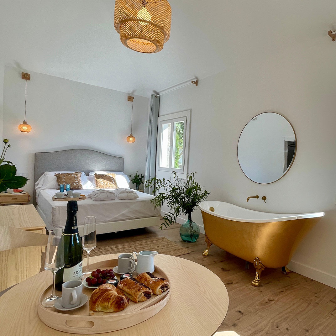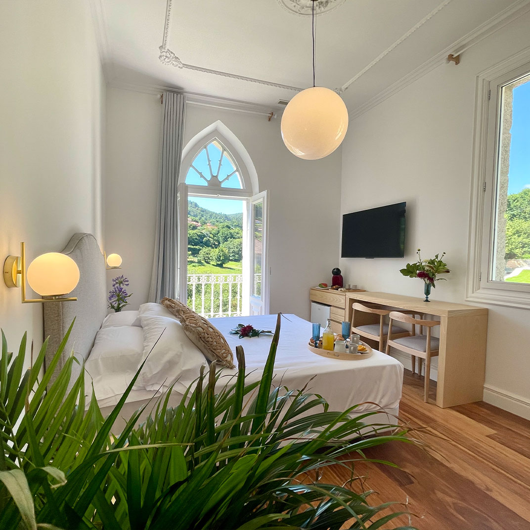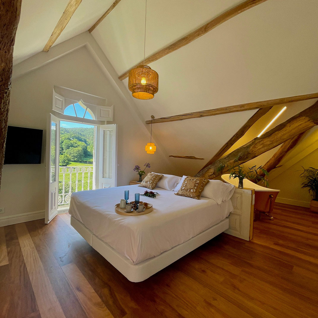 Sitting in the Galician village of Gaxate, the Swiss-designed Villa Boutique 1880 remained in the hands of three generations of the same local family before it was sensitively transformed into a hotel. To respect this heritage, individually designed rooms take their names and character from the building’s architectural details and family stories, but expect a mix of classic neutral shades, rustic beams, and original arched windows that look across the manicured gardens. It’s here where you’ll find the outdoor heated pool, which can be complemented by a number of different yoga classes—Hatha, Vinyasa, and even Tog Chöd and Tibetan Sword Yoga—or with spa treatments that combine the relaxing properties of massage, aromatherapy and sound healing. The restaurant puts a contemporary riff on Galician flavors and produce with a seafood-driven menu and Spanish dessert favorites such as filloas, torrijas, and baked cheesecake.